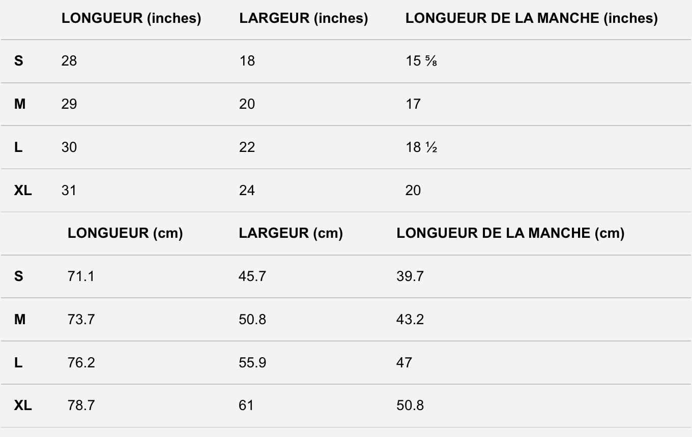 GUIDE DES TAILLES